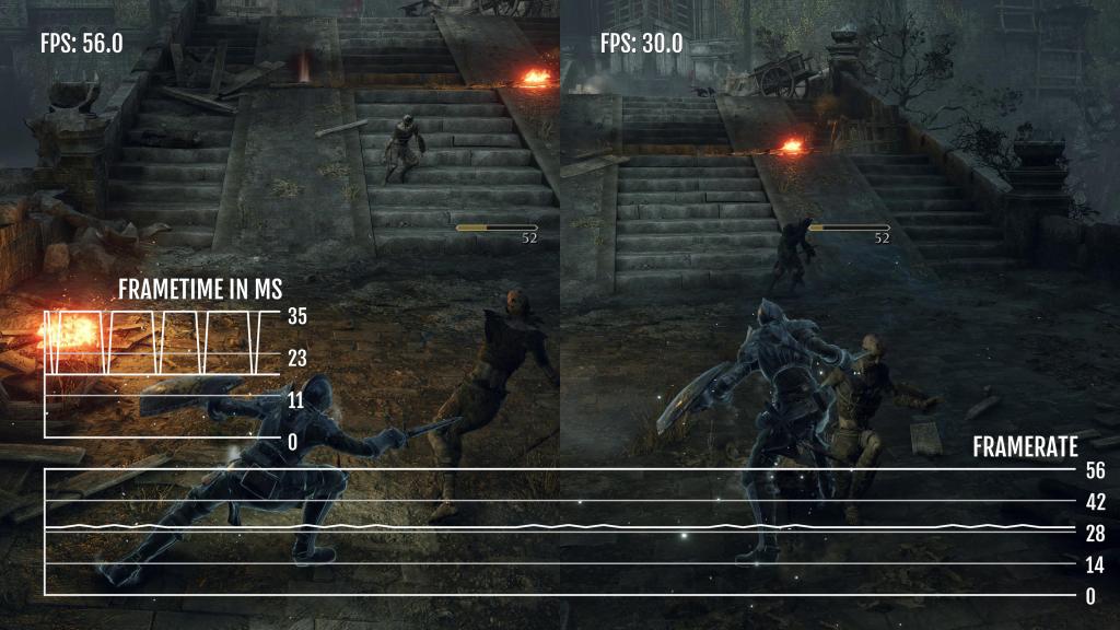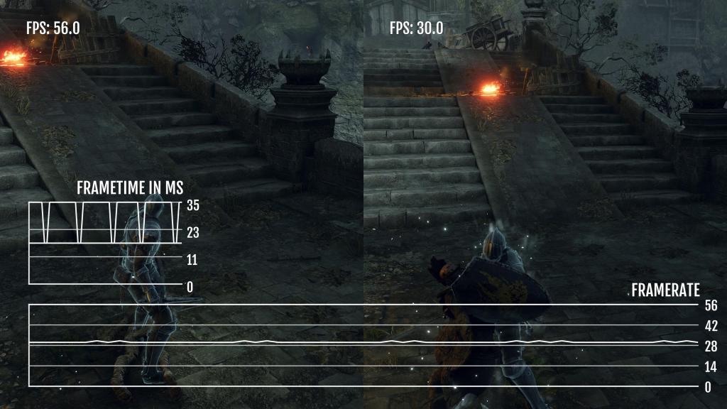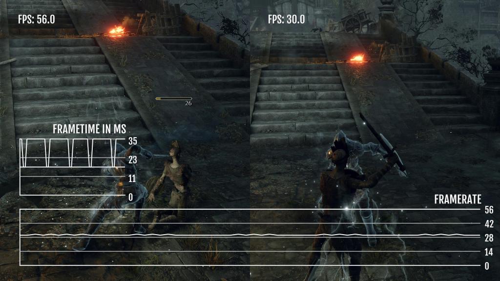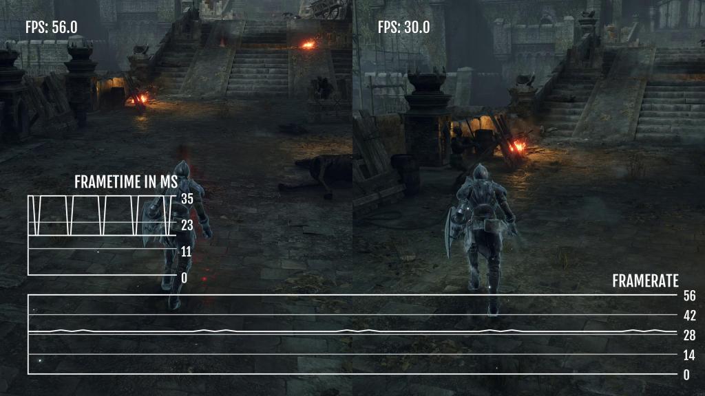 De l’aveux même du fondateur de Blue Point Games, Marco Thrush, le jeu a d’abord été pensé et créé pour tourner sous le mode performances, en 60fps et avec une réponse de pixel meilleure. Le mode cinématiques n’a été ajouté ensuite uniquement pour donner servir de vitrine technologique à la PS5. Honnêtement vous aurez beau être défenseur de la résolution, du détail, de la précision ou des effets lumineux si vous testez le mode performance vous ne pourrez pas revenir au mode cinématique. Surtout que la difficulté notoire des jeux From Software est bien plus abordable avec un meilleur framerate et un jeu qui répond mieux aux inputs que le joueur lui envoie.