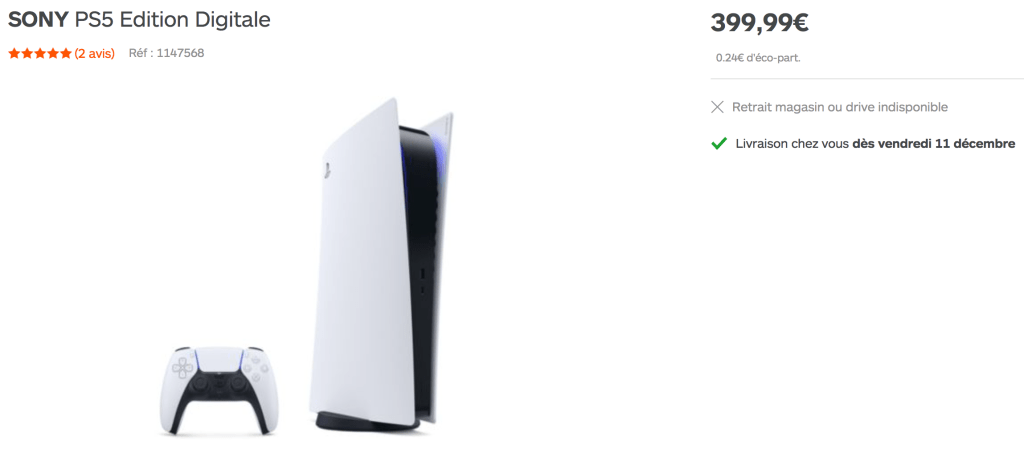 MAJ 04/12/2020 : La page de la PS5 Digital de Boulanger vient d’être mis à jour, elle listée comme disponible pour le 11/12 mais on ne peut pas encore la mettre dans le panier.
