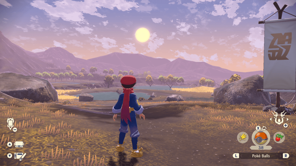 Le futur c’est d’ailleurs d’où l’on vient au tout début du jeu. Provenant d’une région liée au lore de Pokémon Perle et Diamant, le héro, arrive dans un monde où le Pokémon n’est pas encore le meilleur ami de l’homme. Un monde dans le passé où il existe encore un grand mystère autour des Pokémons. Les habitants du monde d’Arceus sont partagés entre fascination, crainte et amitié envers ces pokémons. Pas de grandes villes ici et encore moins d’arènes Pokémon. L’accent est mis sur un certain souffle de la nature (toute comparaison avec d’autres jeux Nintendo serait entièrement fortuite). Mais ce n’est pas que la philosophie autour de ces monstres de poche qui changent, c’est toute la structure du jeu. Pas d’arènes, pas de badge ! Pour progresser dans Légendes Pokémon Arceus il faut allez se balader dans les différentes zones ouvertes, et remplir son Pokédex en capturant des Pokémon puis en remplissant toutes les tâches liées à ceux ci. Cela peut aller de la simple capture à donner à manger à ces Pokémons.